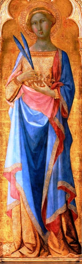 C’est le nom qu’aurait aussi porté une martyre du IIe siècle. Elle aurait été, selon la légende, une jeune chrétienne de 16 ans qu’un gouverneur romain aurait fait écarteler entre deux palmiers, peut-être en Syrie.