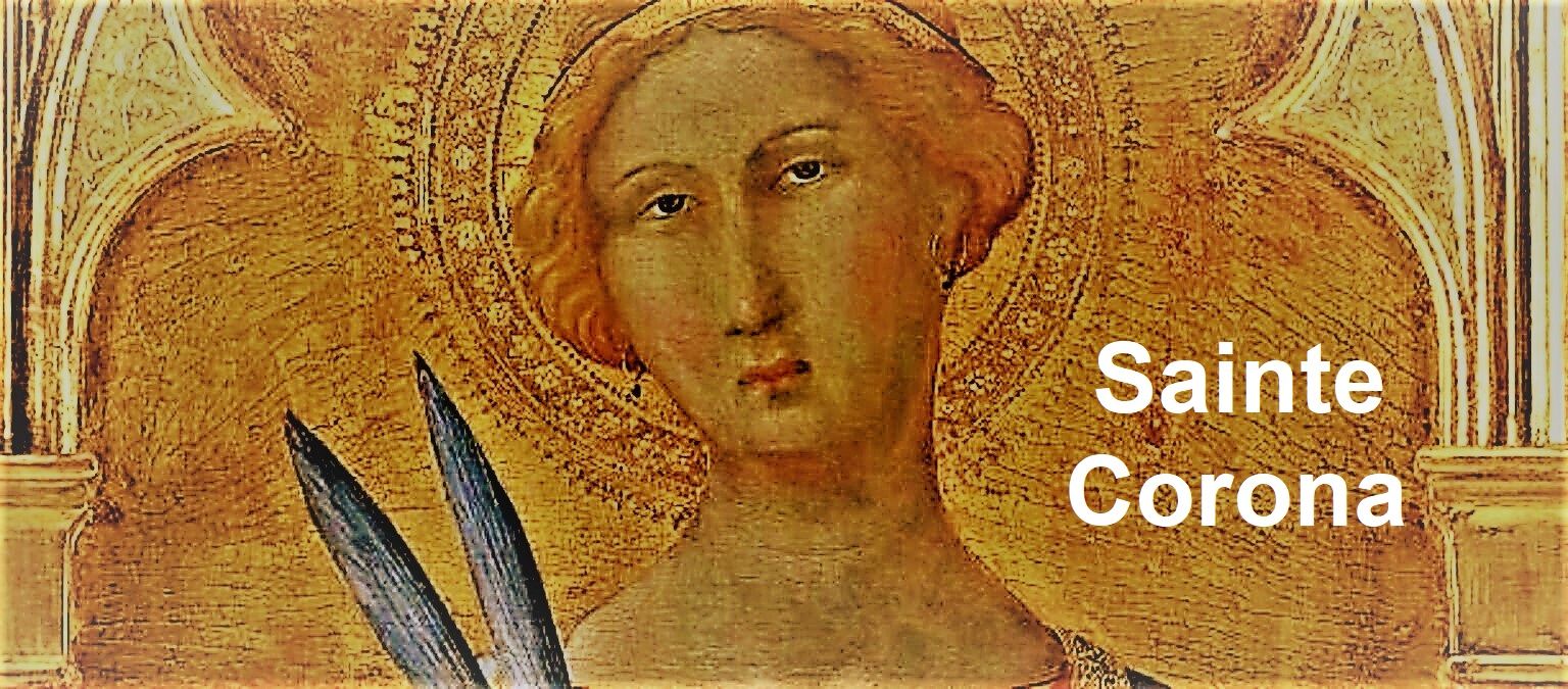 Sainte Corona est surtout vénérée en Allemagne et en Autriche et, s'il existe des églises santa Corona en Italie, celles-ci font plutôt référence (mis à part celle de Feltre) à la couronne d'épines du Christ. Rappelons en outre que le coronavirus se nomme ainsi car il a une forme de couronne."